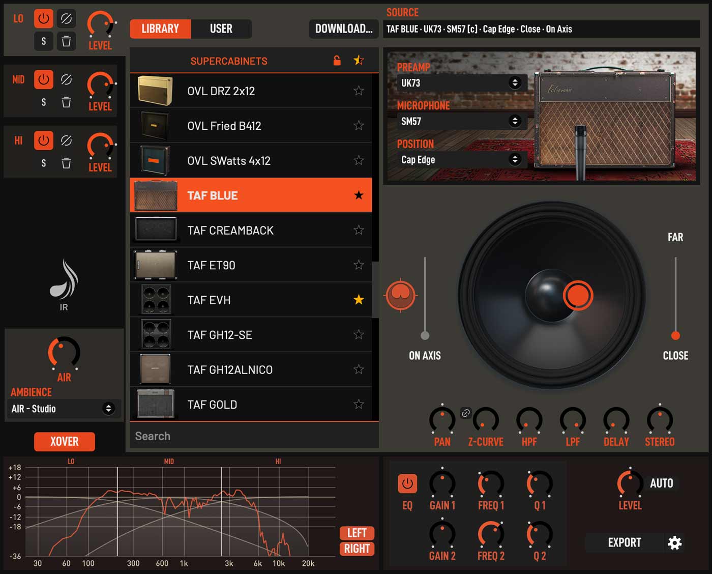 The SuperCabinet is the revolutionary Fluid IR processor, based on Overloud's Fluid Convolution Technology, which allows to capture the real essence of each speaker and create cabinet tones in a way that has never been possible before. It is included into THU Premium.